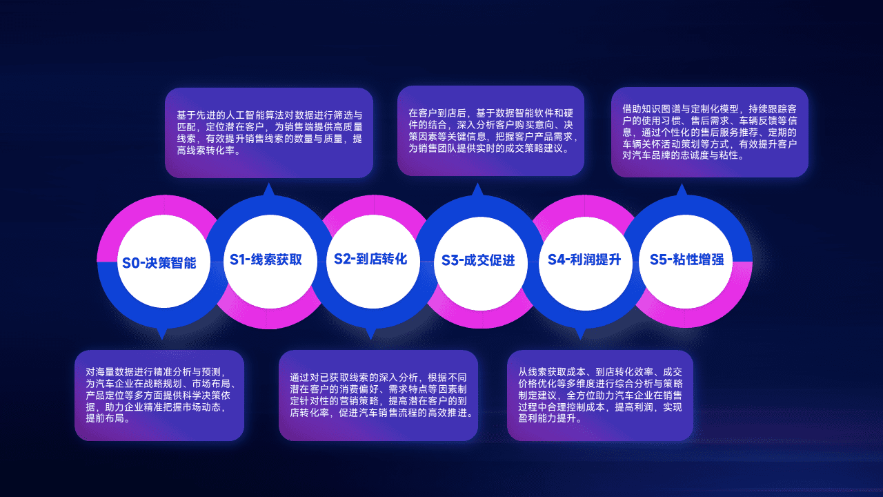 通过拓宽潜在客户来源、、优化线索分配并提高到店转化率,,以增强销售效率。。。同时,,利用线索数据不断优化分析模型,,,有效提升转化率,,,,扩大营销影响力。。